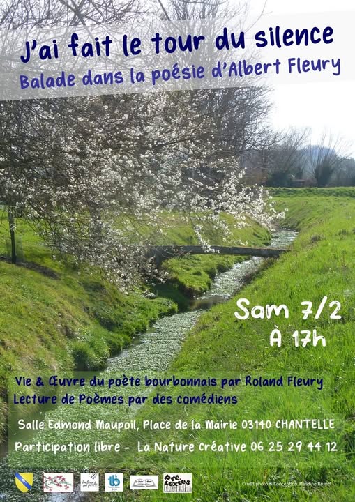 Une rencontre littéraire est proposée au public ce samedi 7 février 2026 à 17h00, à la salle Edmond Maupoil à Chantelle (à côté de la mairie), autour de l’œuvre du poète Albert Fleury (1923-2006).